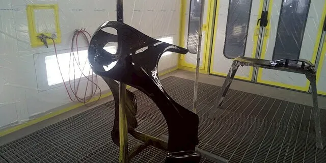 塗装ブースの優秀性を左右する天井フィルターを天井全面に設けており、塗装で最も重要視するブース内の風速と均一な風の流れをつくり出しています、またゴミブツの付着を防ぐことができます。