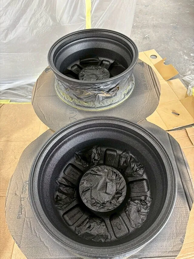 近くで見たときにホイールの裏側のメッキ部分が見えないように今回は塗装させていただきました。