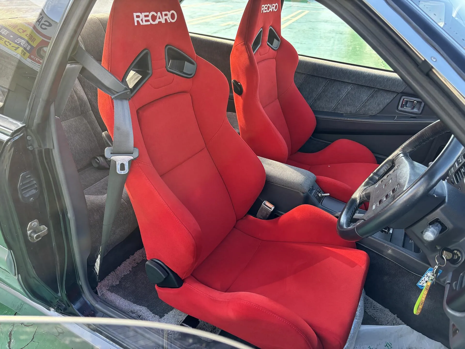 内装には赤いRECAROシートが取り付けられ、ドライビングへのこだわりも感じられる一台です。